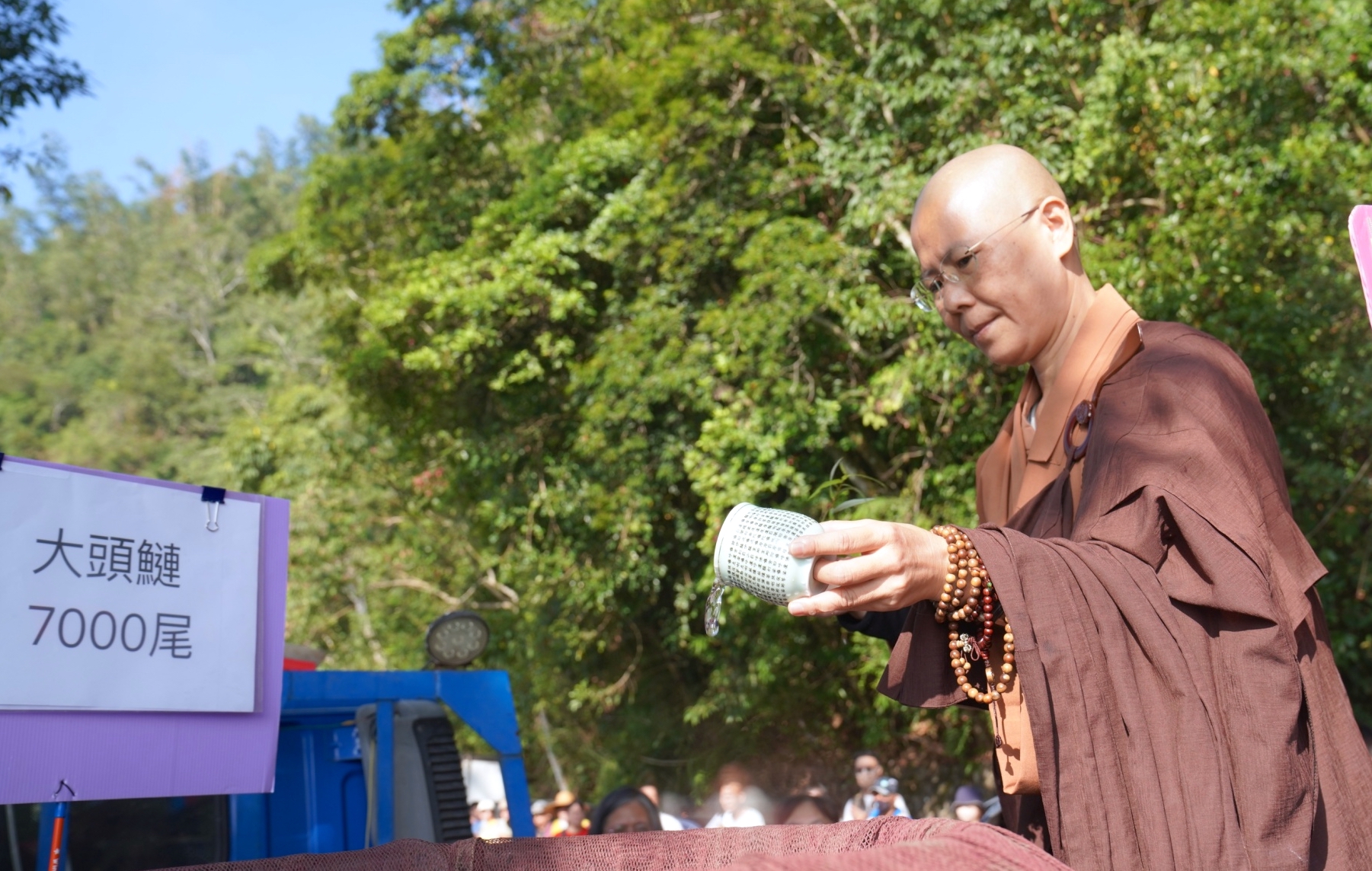 活動依循佛教儀軌莊嚴進行,眾人虔誠祈願放流的鯉魚、烏鰡、草魚與大頭鰱等共計26,000尾魚苗,能順利在日月潭成長茁壯,藉此放流重建湖泊生態、護持自然永續。法師讚歎日月潭的山水之美,在當今天災難仍頻的時代,每一次合法放生、每一念慈悲善行,都是我們守護地球、延續生命最具實踐力的行動,亦是我們健康長壽、福慧增長的殊勝因緣。
