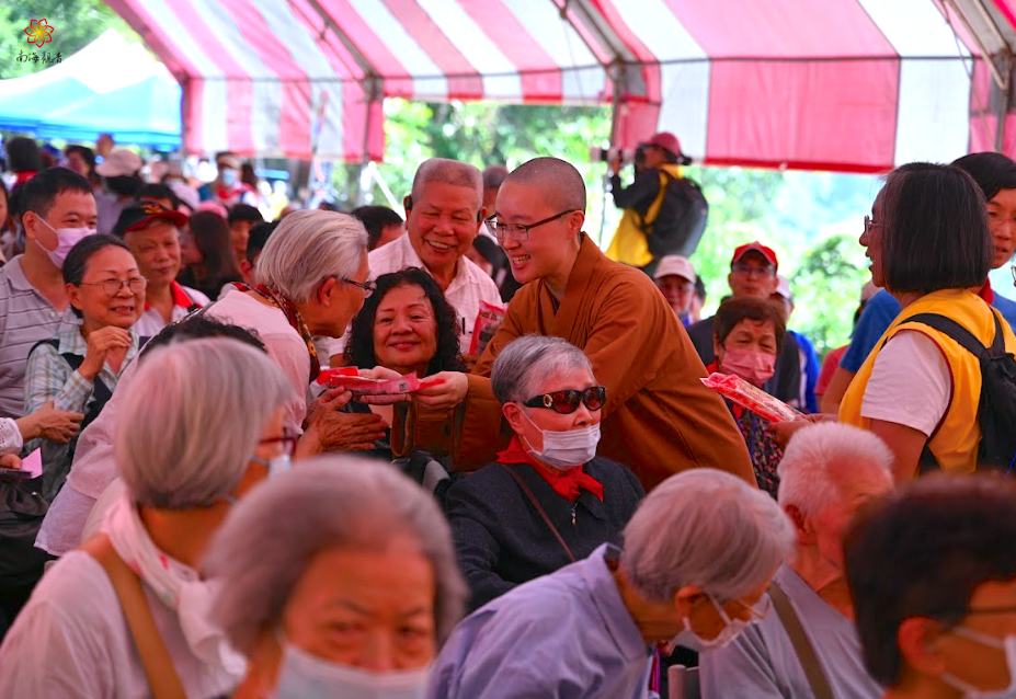 基金會也特別準備象徵長壽祝福的手工麵線,由三位法師親手遞送給年滿75歲以上的長者,其中最高齡者為96歲。