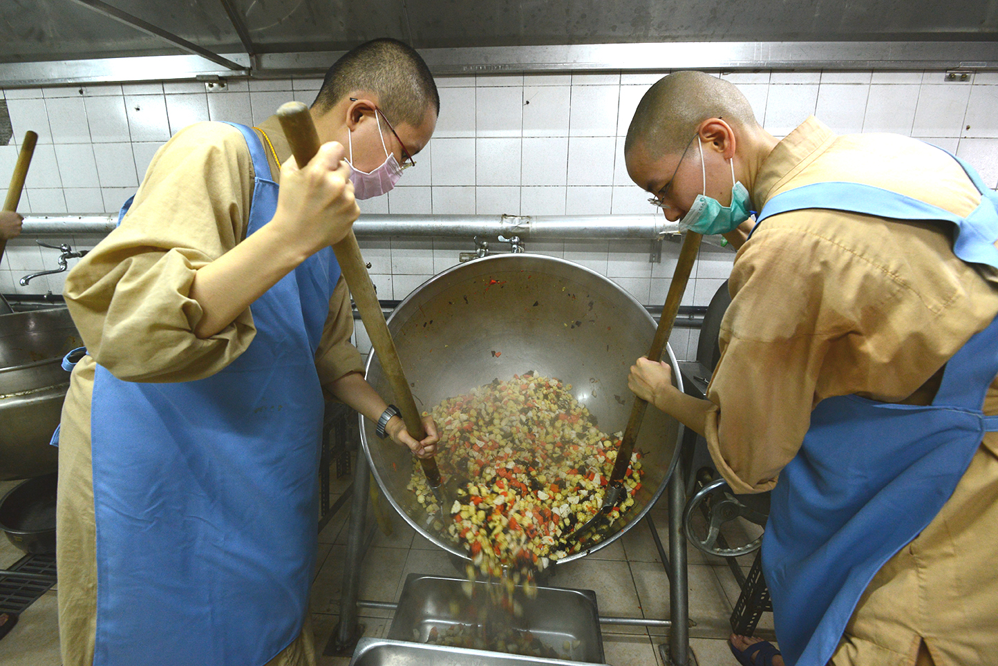 在學制內的僧眾們,從入寺開始,就要面對各種不曾體驗過的勤務,舉凡清掃百坪大殿、協助打理近五百人的飲食、一群人彼此磨合學習互助…