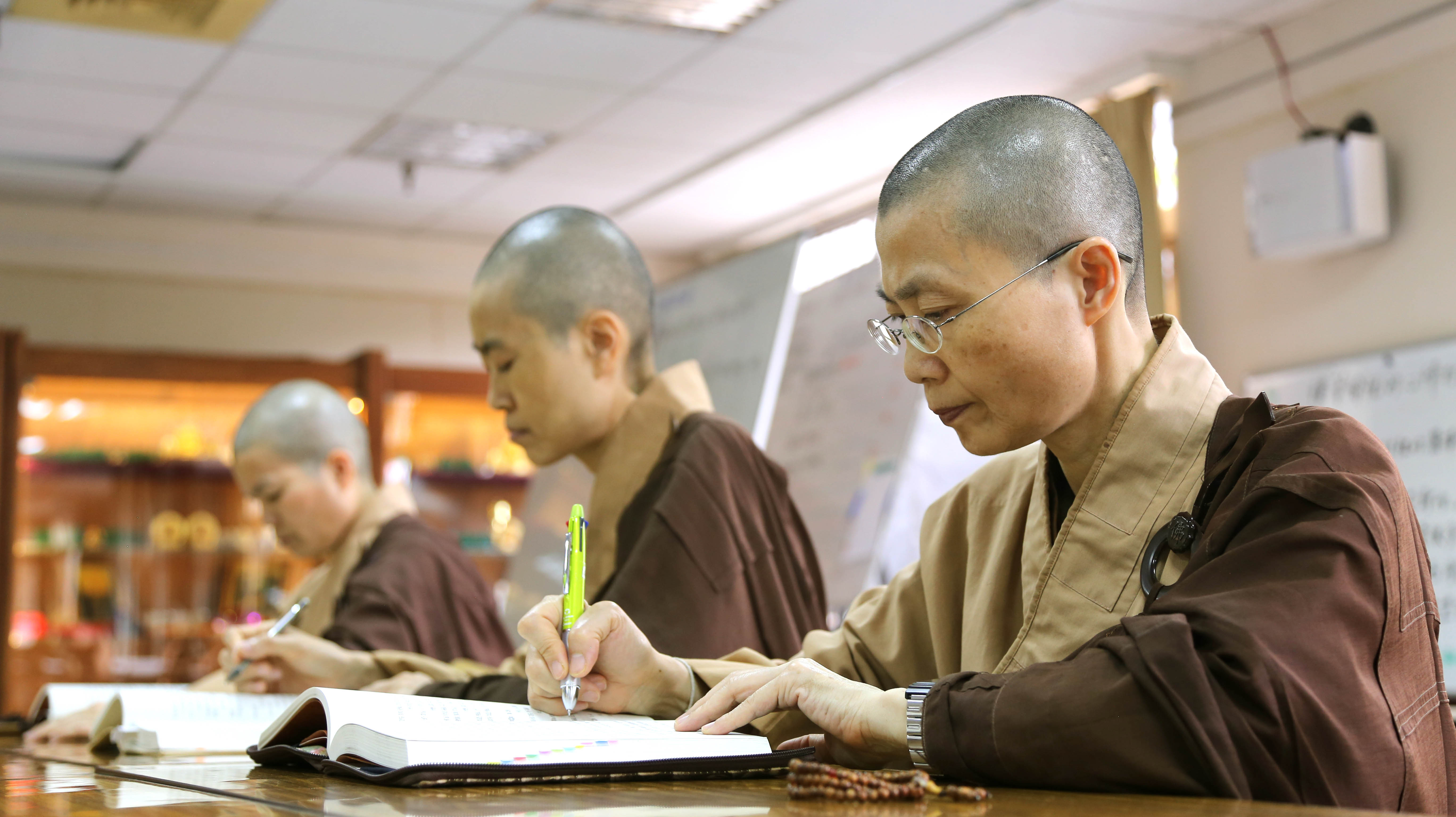 莊嚴秀麗的景致,讓來訪者不禁融入寧靜祥和的氛圍中,一掃心中的煩擾。 靜謐的南海分院,居住著450多位認真修行的尼眾法師,平日聞思《菩提道次第廣論》、《南山律在家備覽》、比丘尼戒條與五部大論,目前共有6個班級進入五部大論學制,全力承接佛陀的甘露法雨。