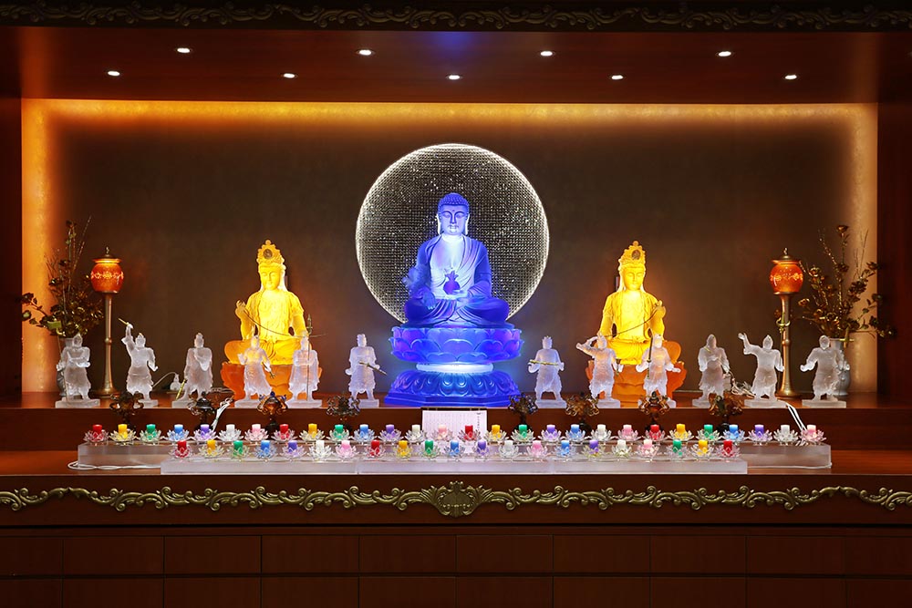 點燈特色: 佛像為環保琉璃材質、金屬框架,大小5.5cm×7cm 僧團每天晚課皆為點燈者迴向祈福 當年度舉辦的消災祈福法會迴向(三千佛法會、藥師寶懺法會、大悲懺法會、祈福超薦施食法會)