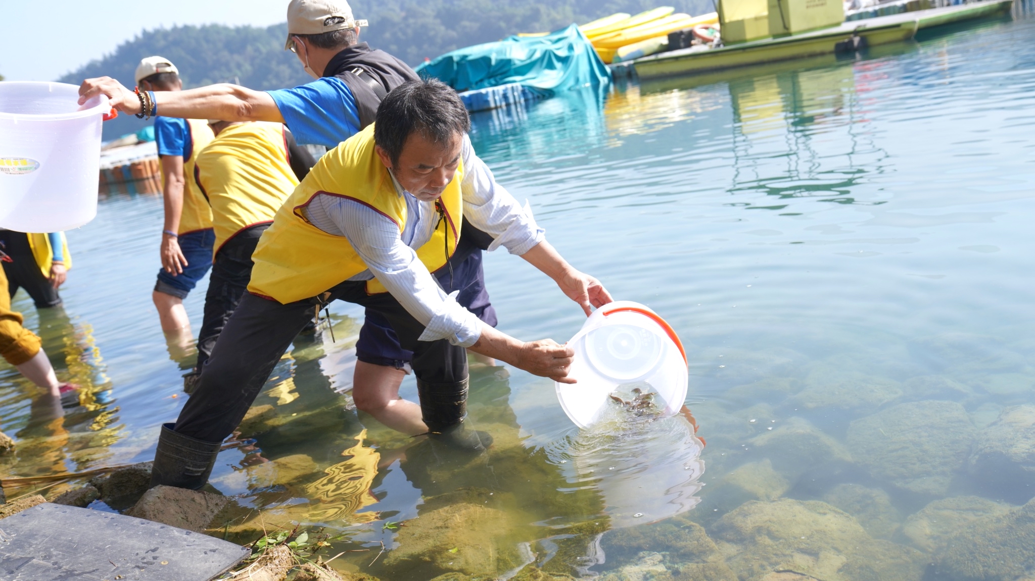 活動依循佛教儀軌莊嚴進行,眾人虔誠祈願放流的鯉魚、烏鰡、草魚與大頭鰱等共計26,000尾魚苗,能順利在日月潭成長茁壯,藉此放流重建湖泊生態、護持自然永續。法師讚歎日月潭的山水之美,在當今天災難仍頻的時代,每一次合法放生、每一念慈悲善行,都是我們守護地球、延續生命最具實踐力的行動,亦是我們健康長壽、福慧增長的殊勝因緣。