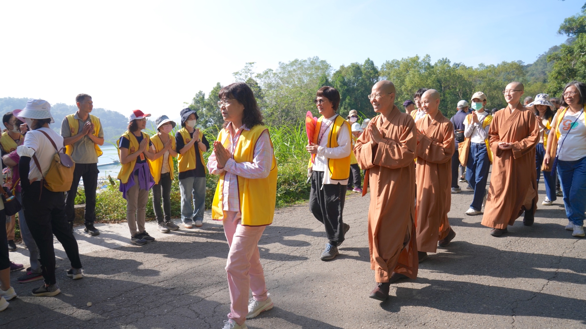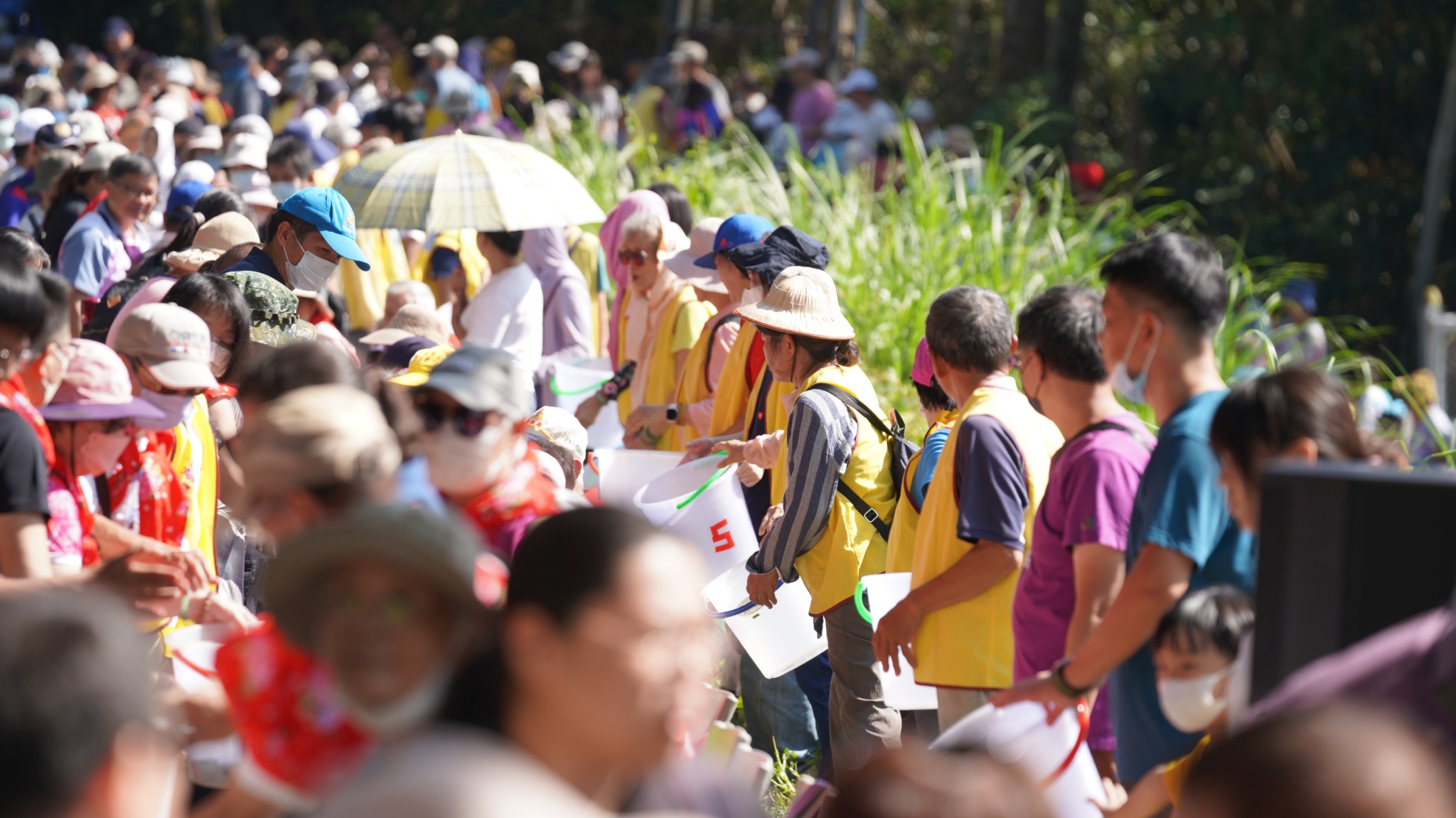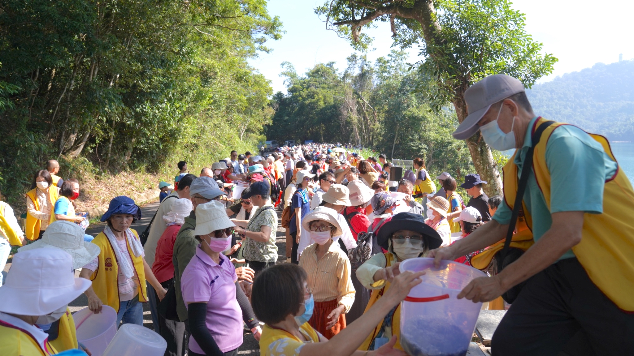 考量許多長者參與活動,沿著放流點的步道平坦、友善,在湖光山色中,闔家攜手散心,留下溫暖足跡。本次活動共吸引約860位民眾扶老攜幼熱情參與,溫馨動人,充滿敬老護生的溫暖力量。